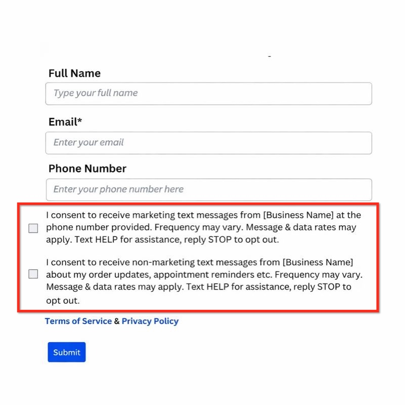 Require SMS consent to submit forms