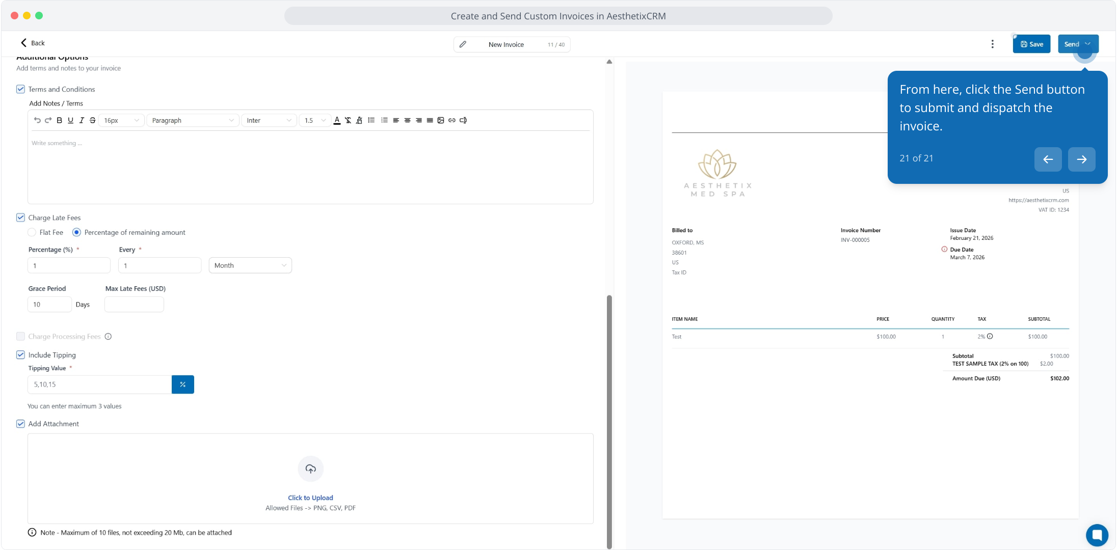 18. Afterwards, enable the Charge Late Fees option to apply additional fees for overdue payments.