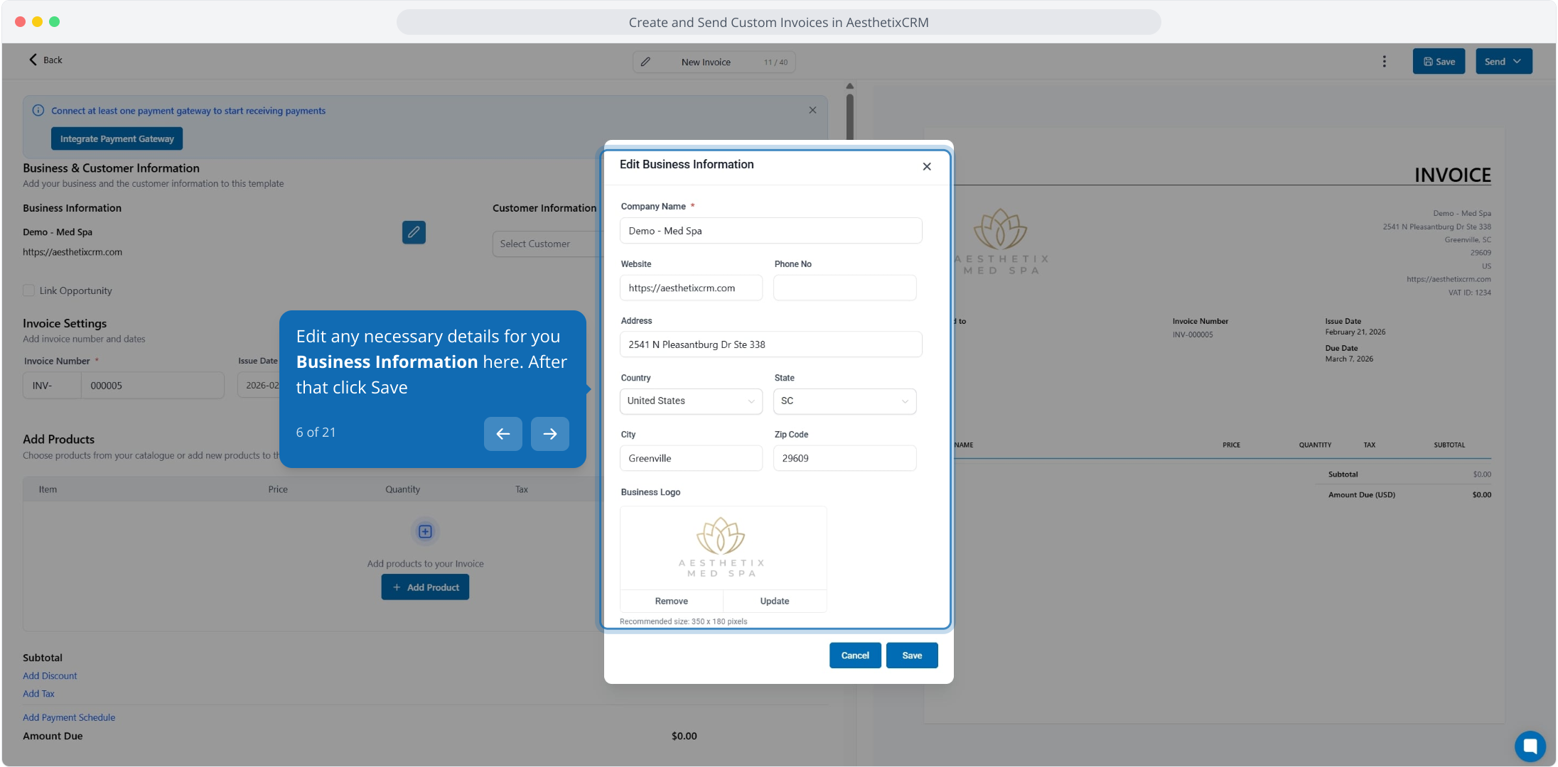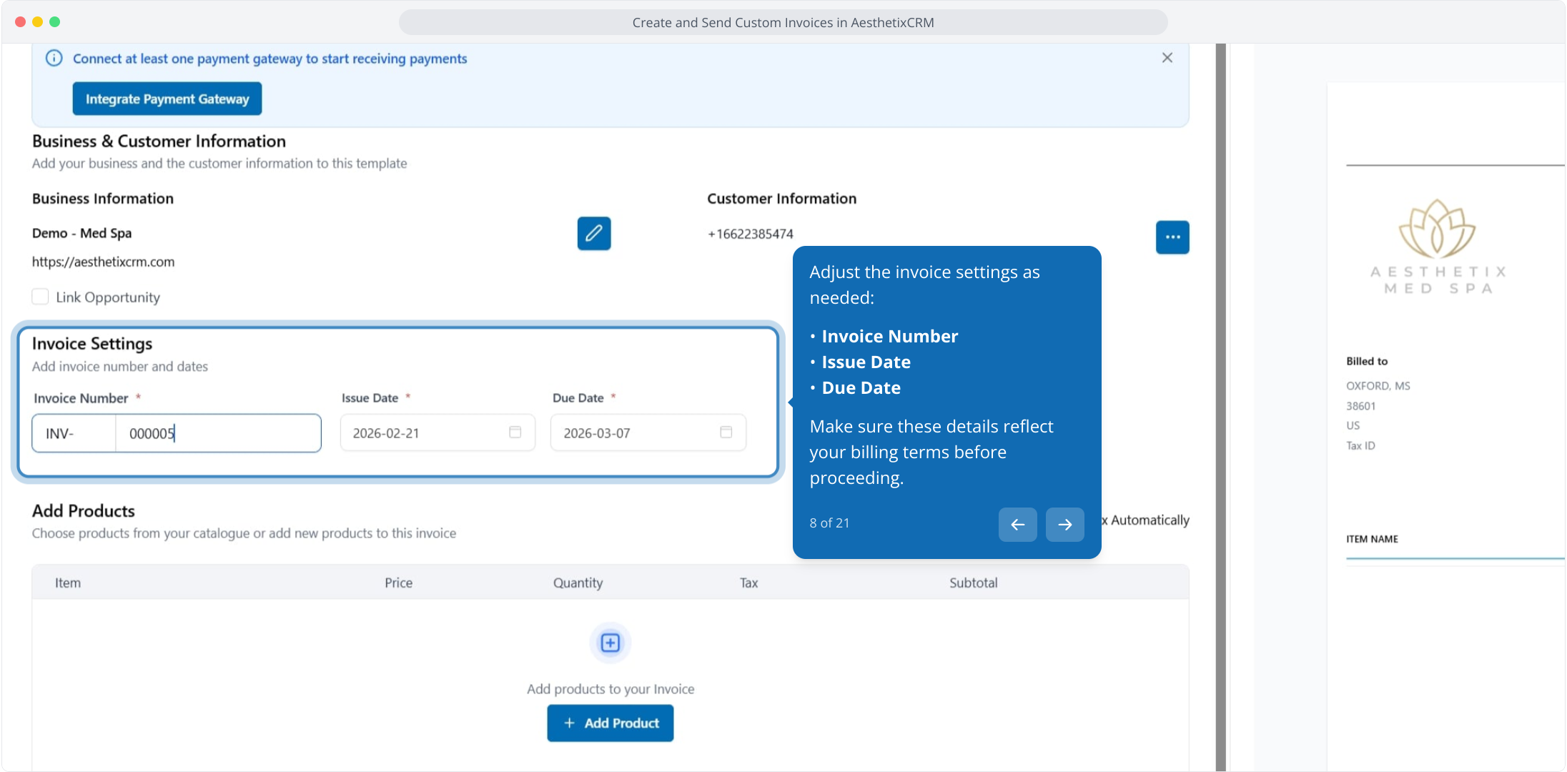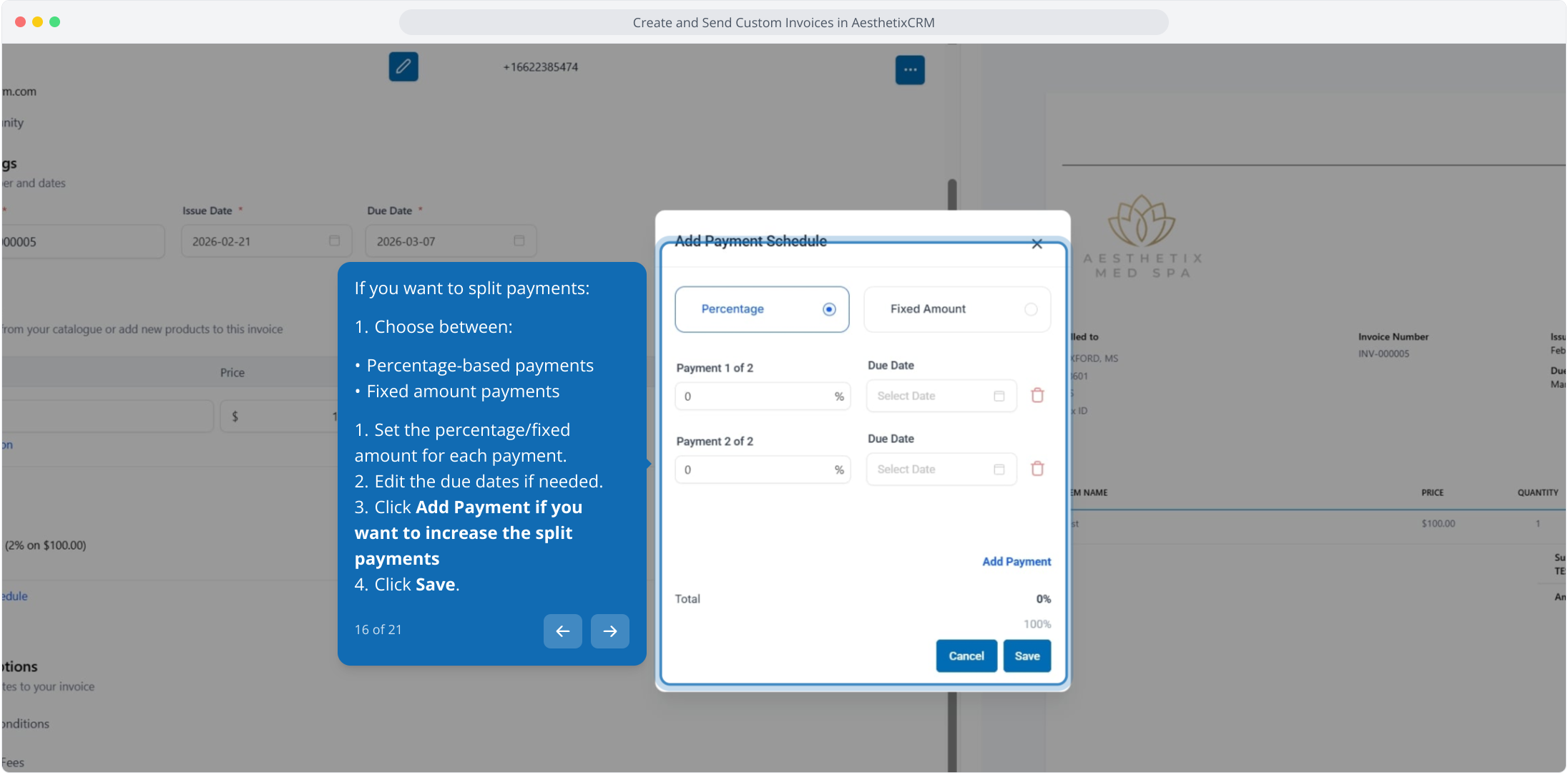 15. Then, click "Add Payment Schedule" to set up a payment plan for this invoice.