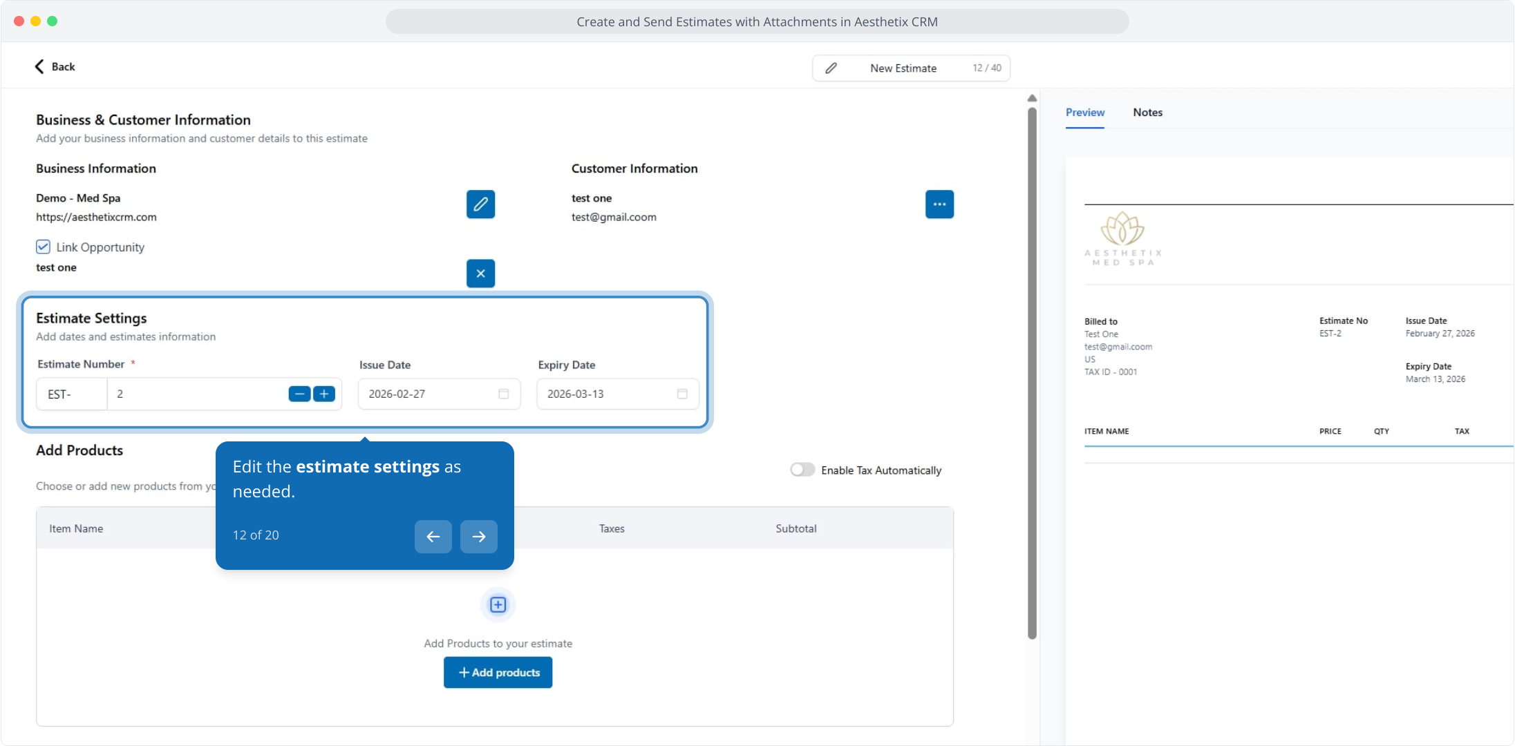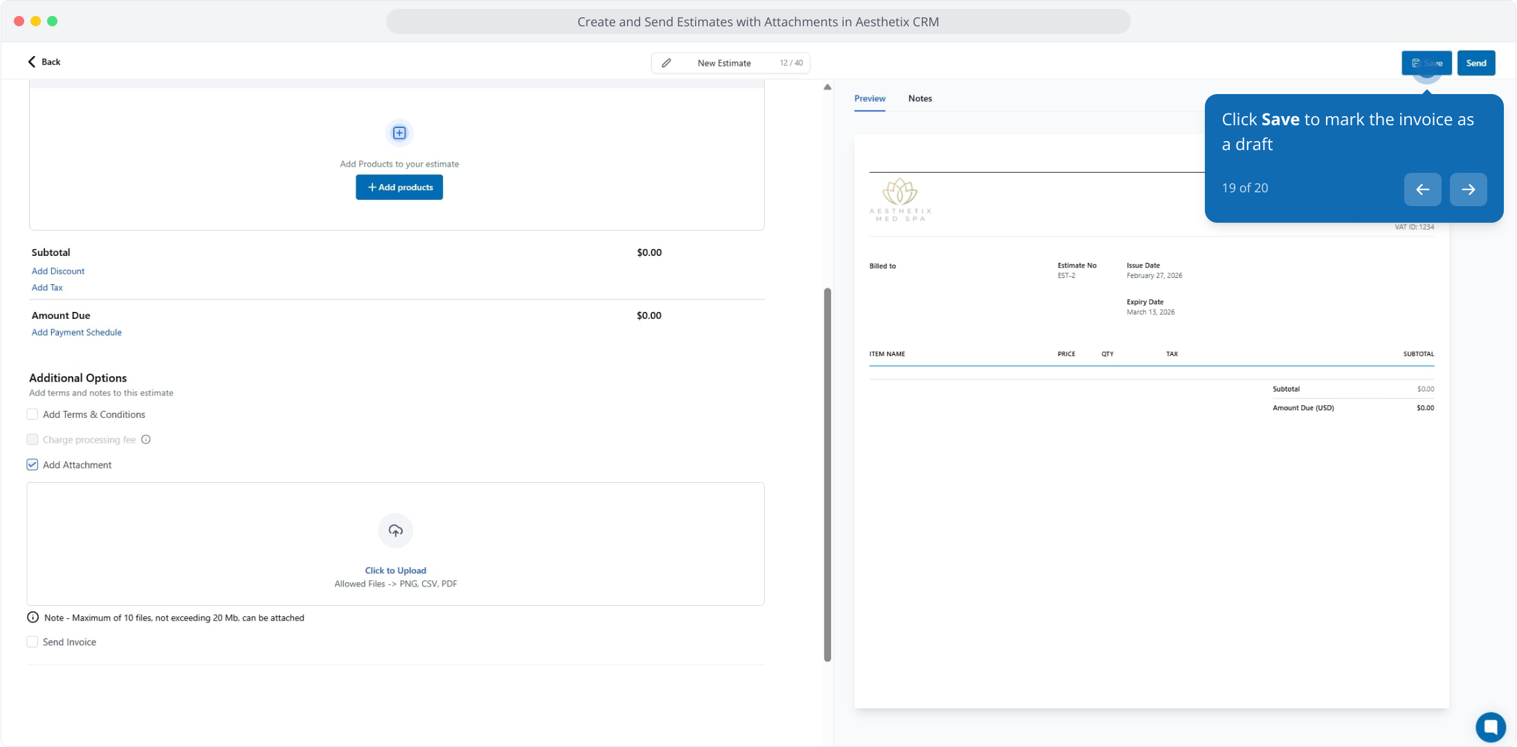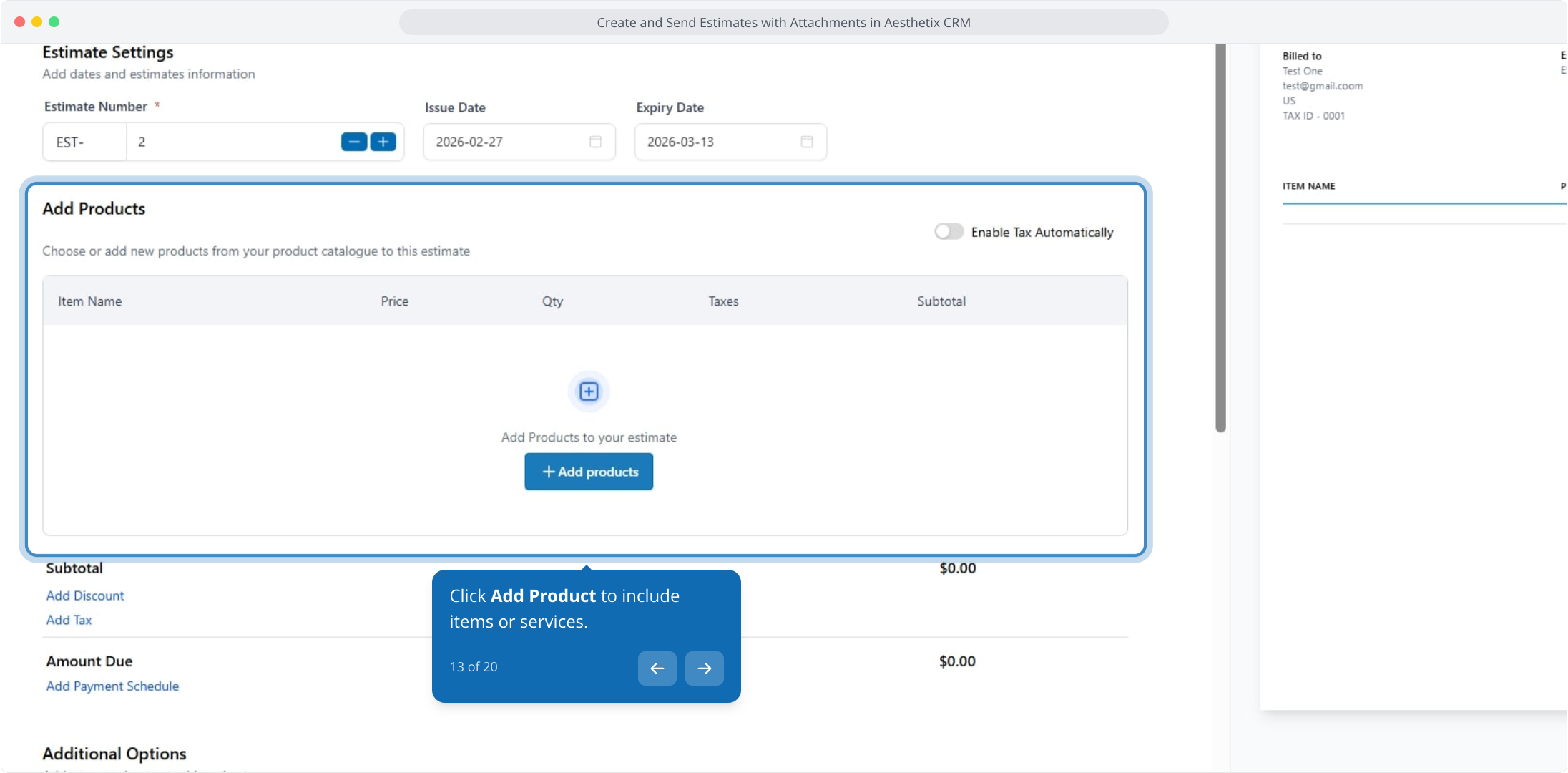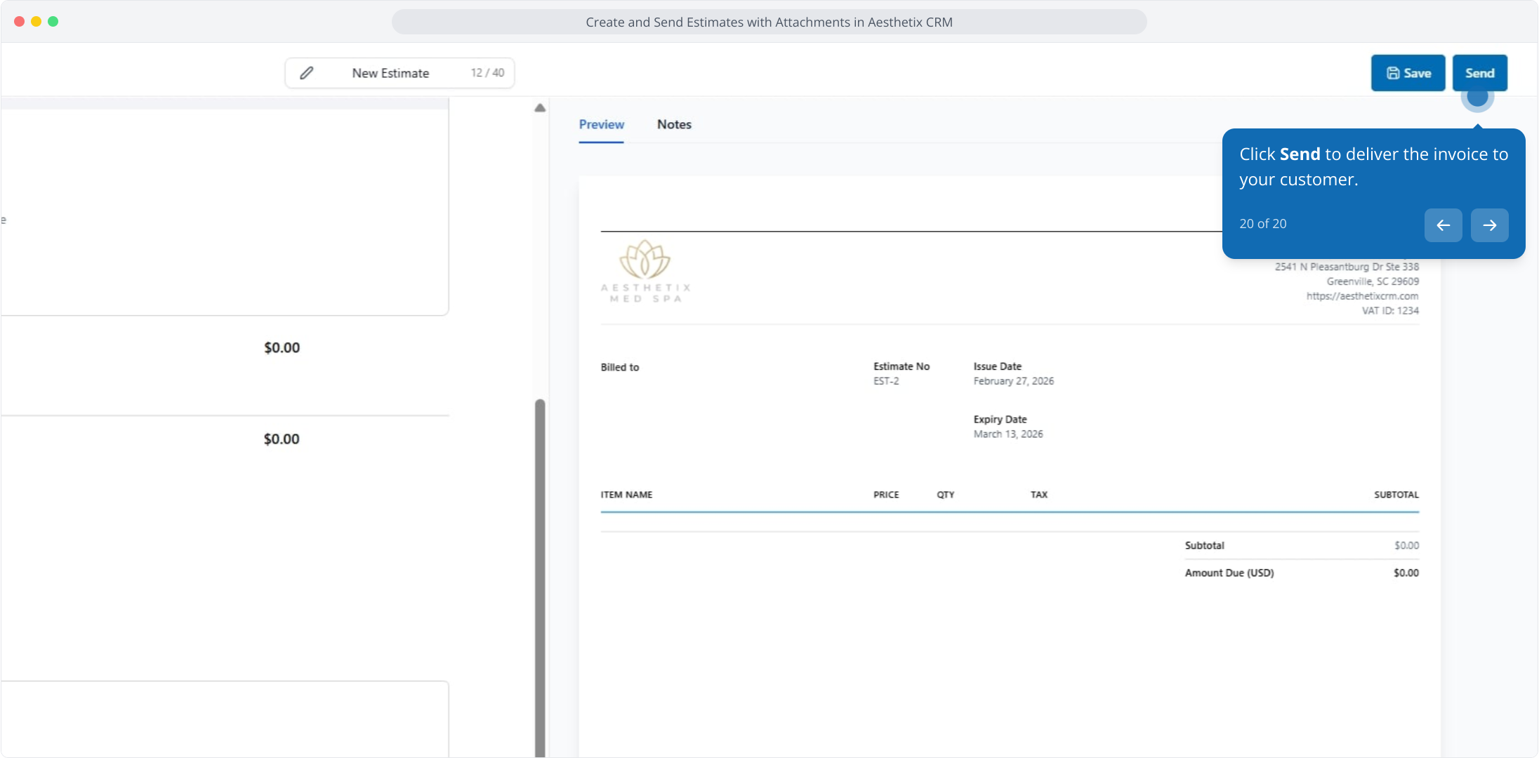 1. Create and Send Estimates with Attachments in Aesthetix CRM