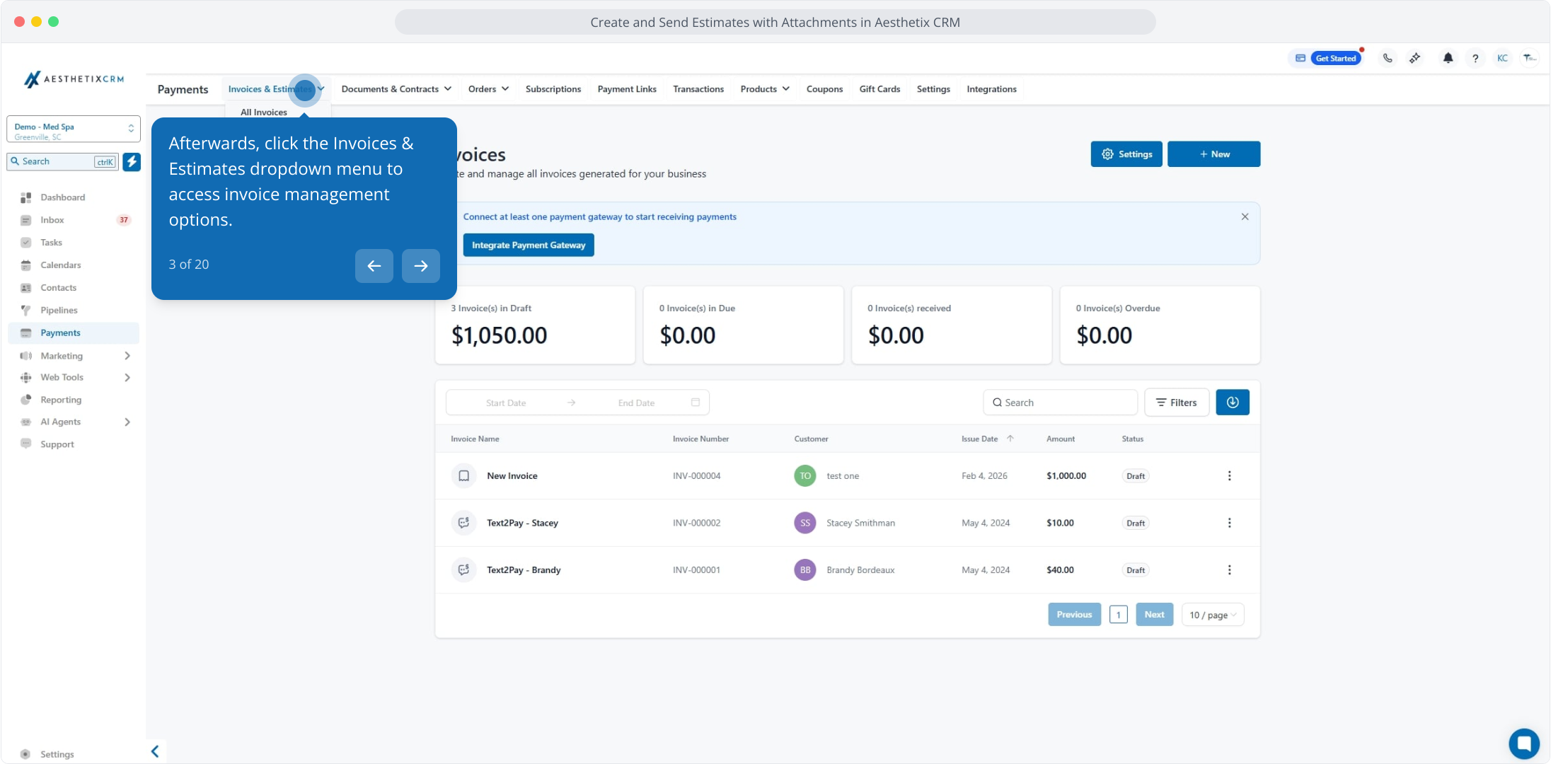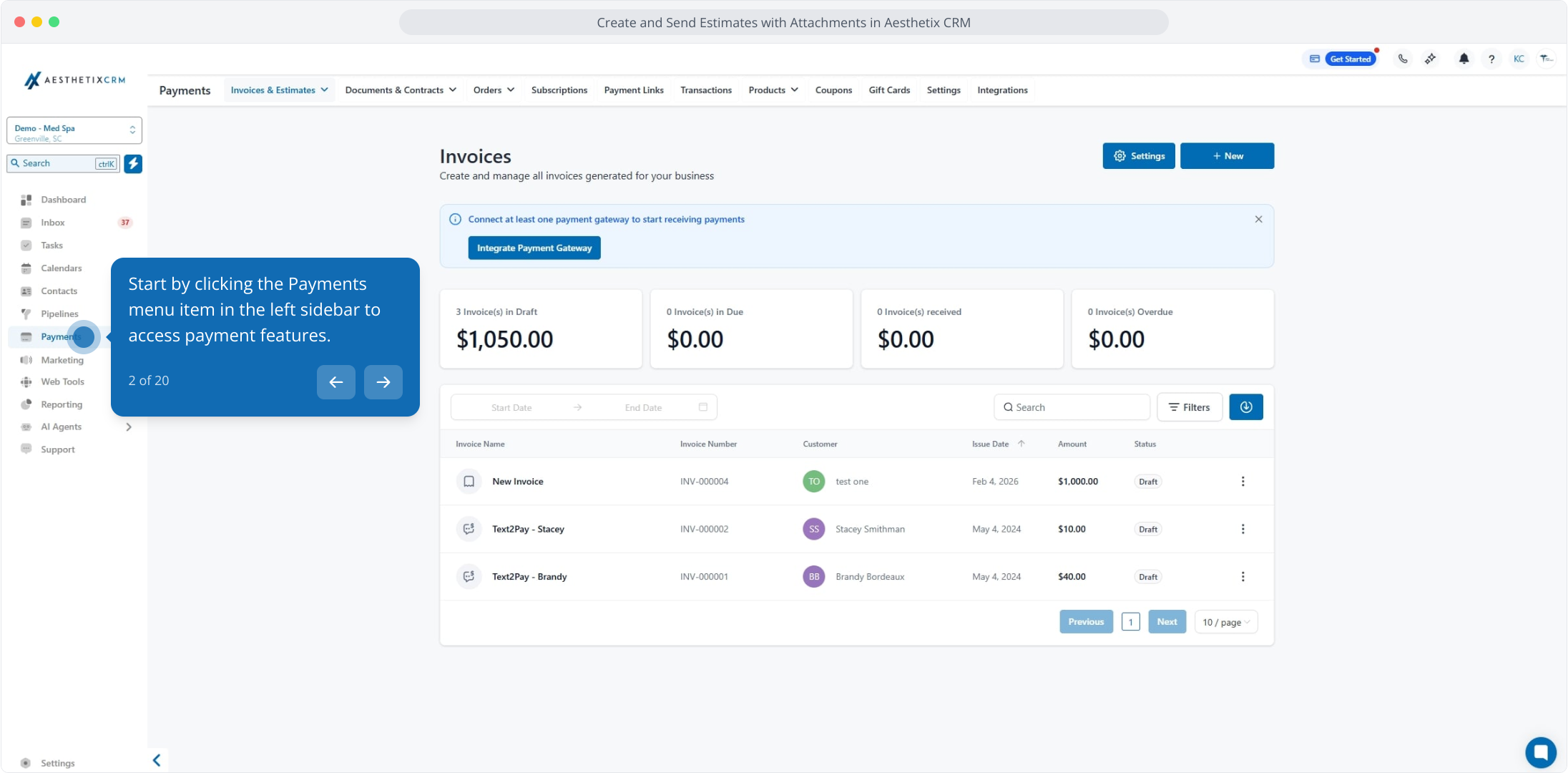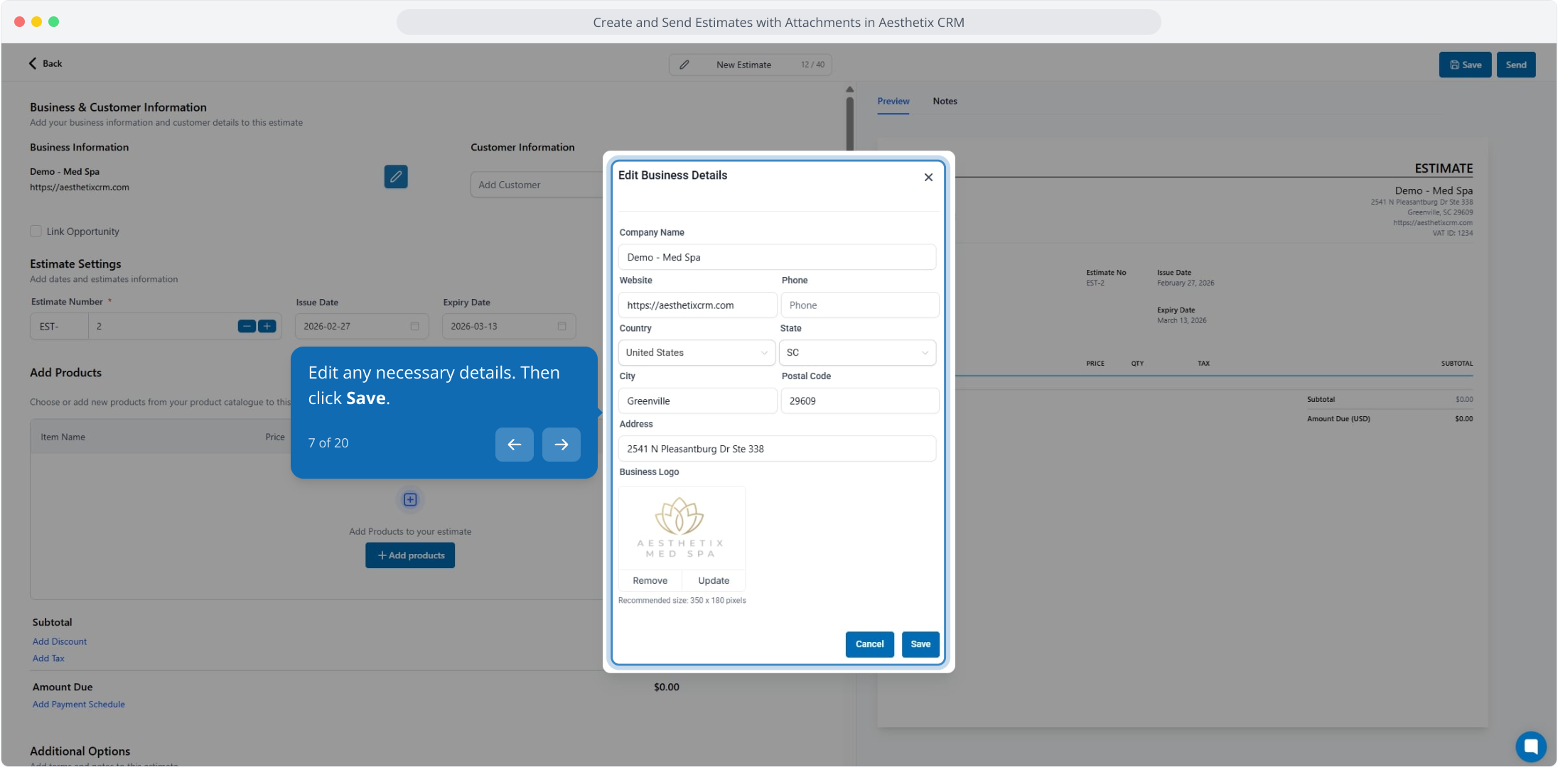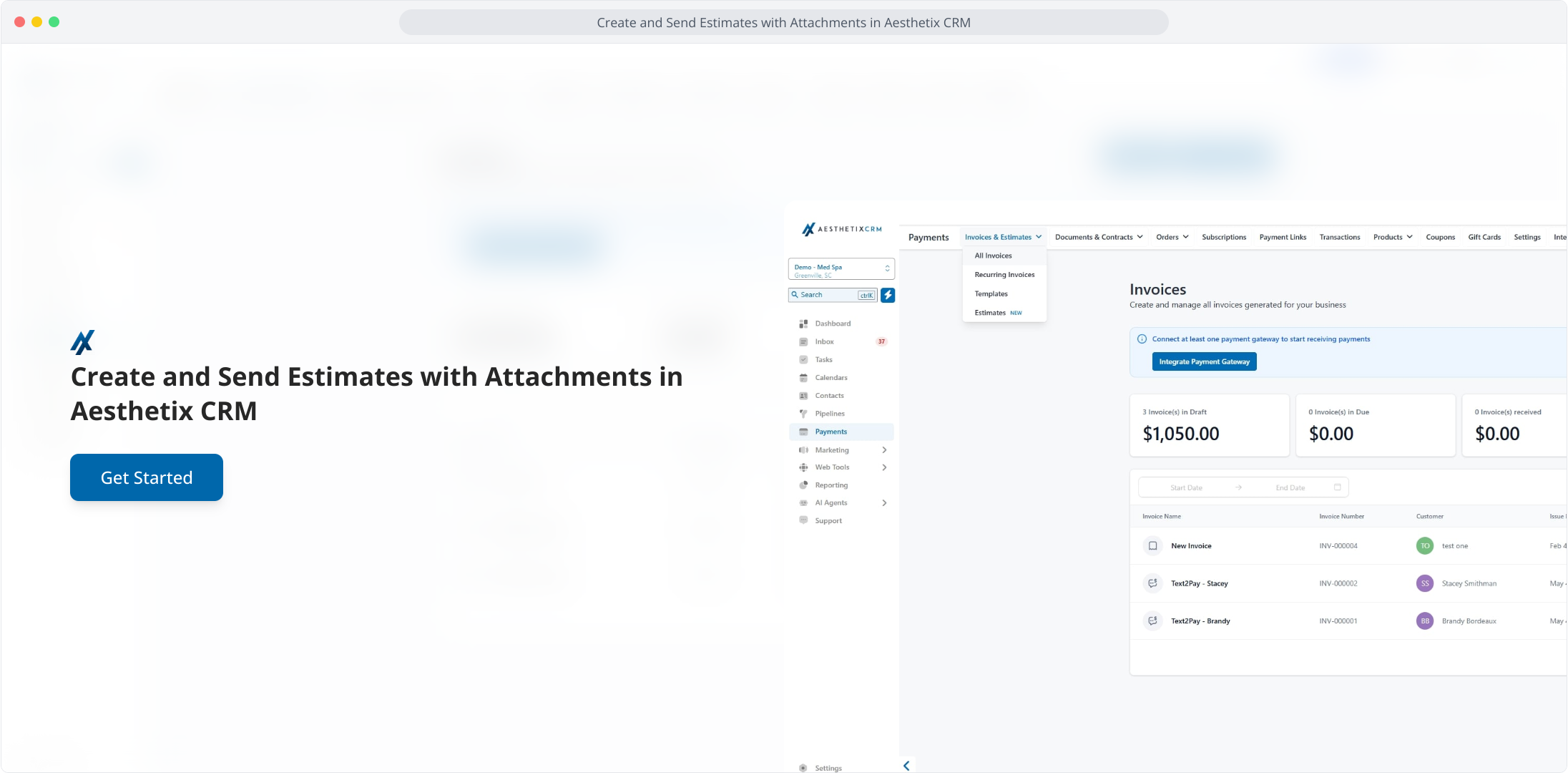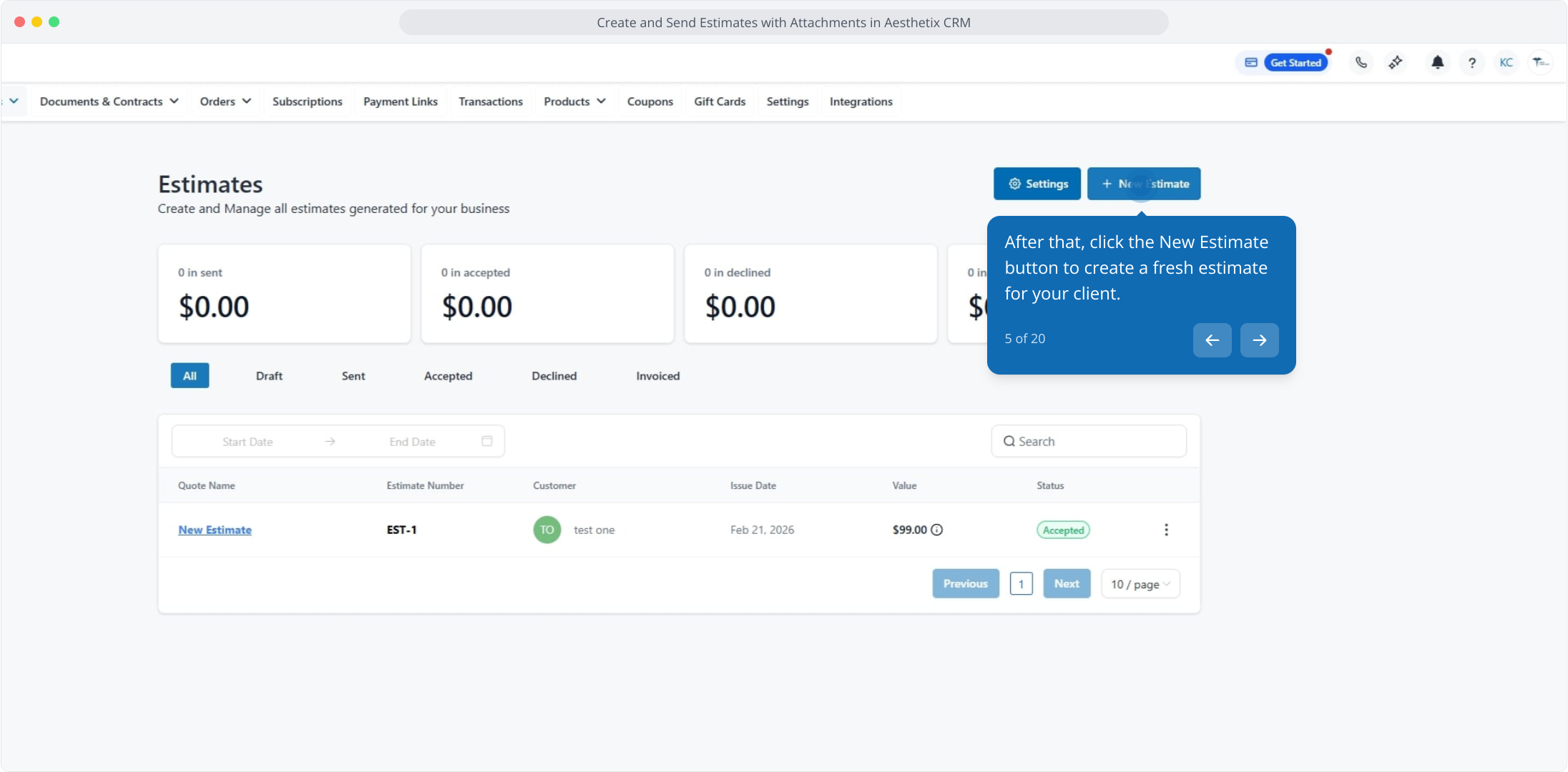 1. Create and Send Estimates with Attachments in Aesthetix CRM