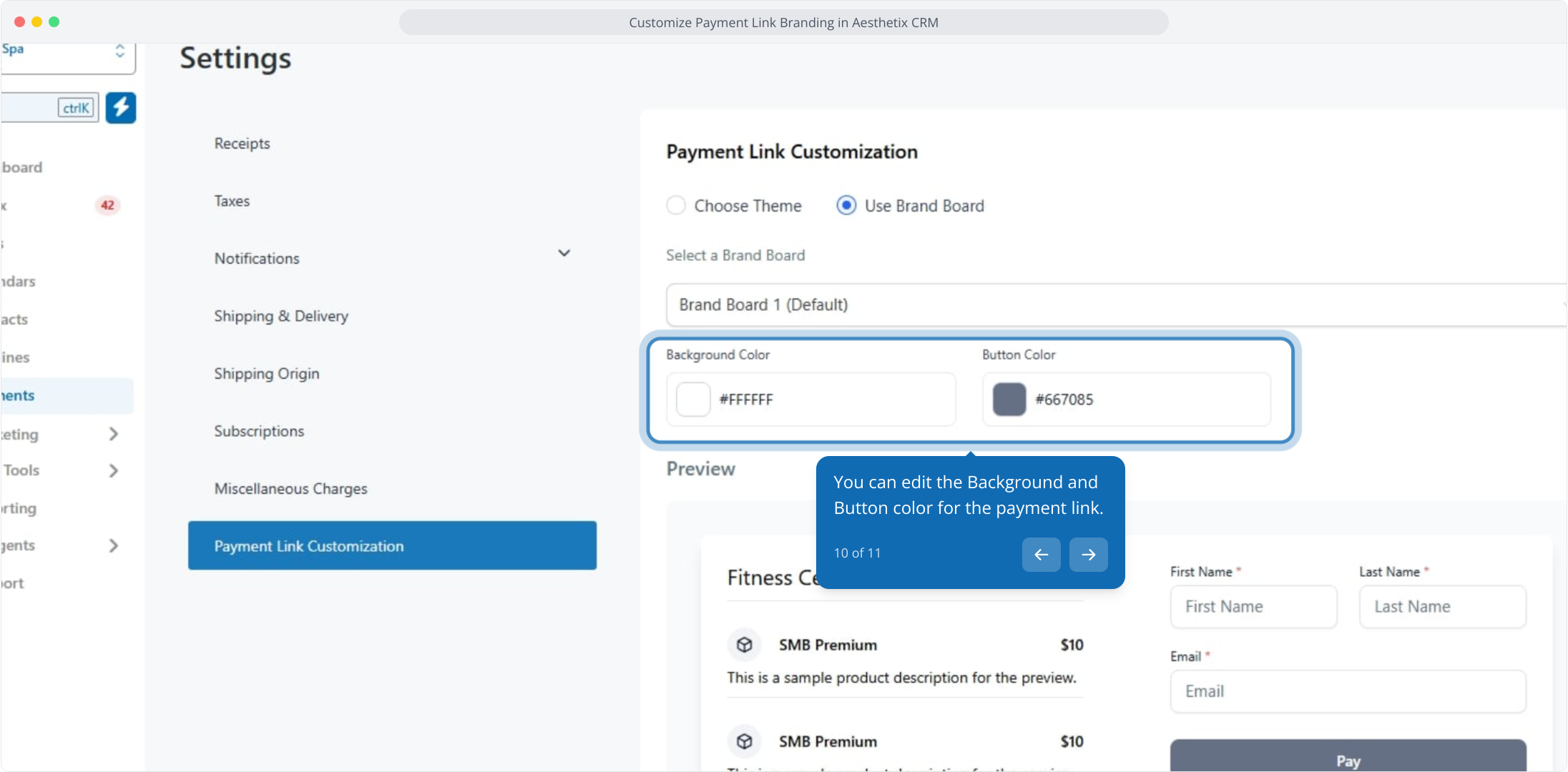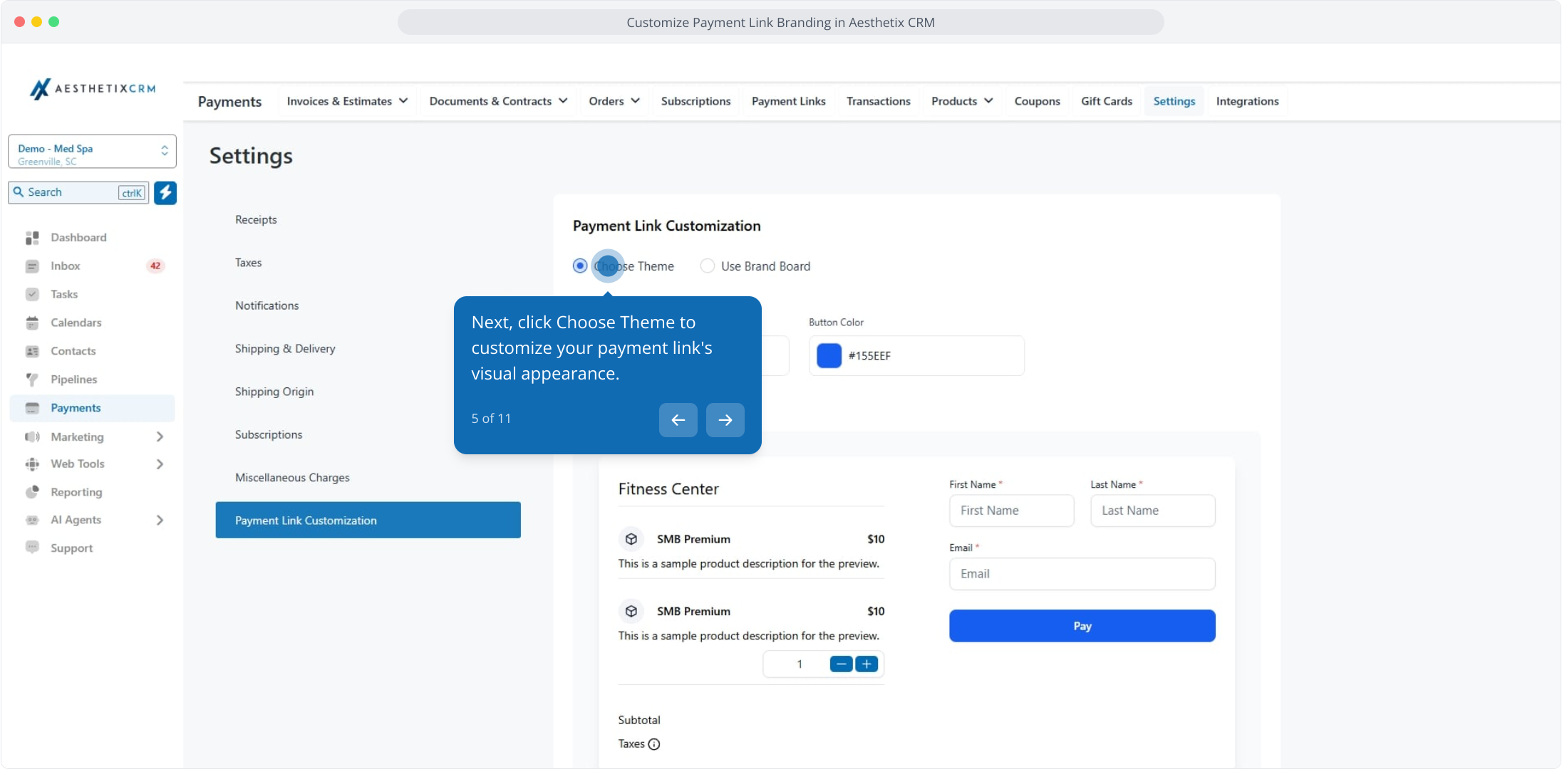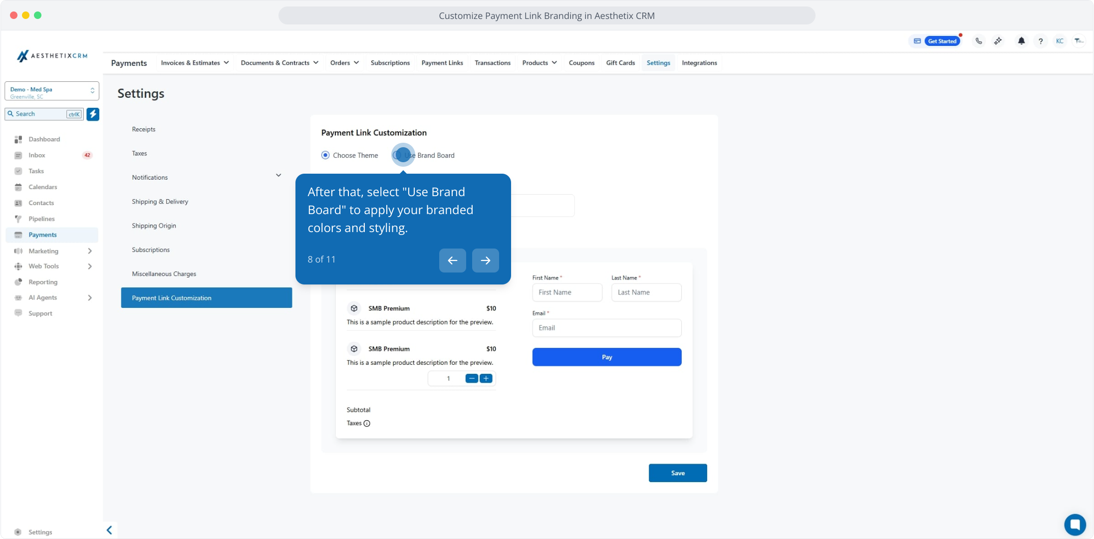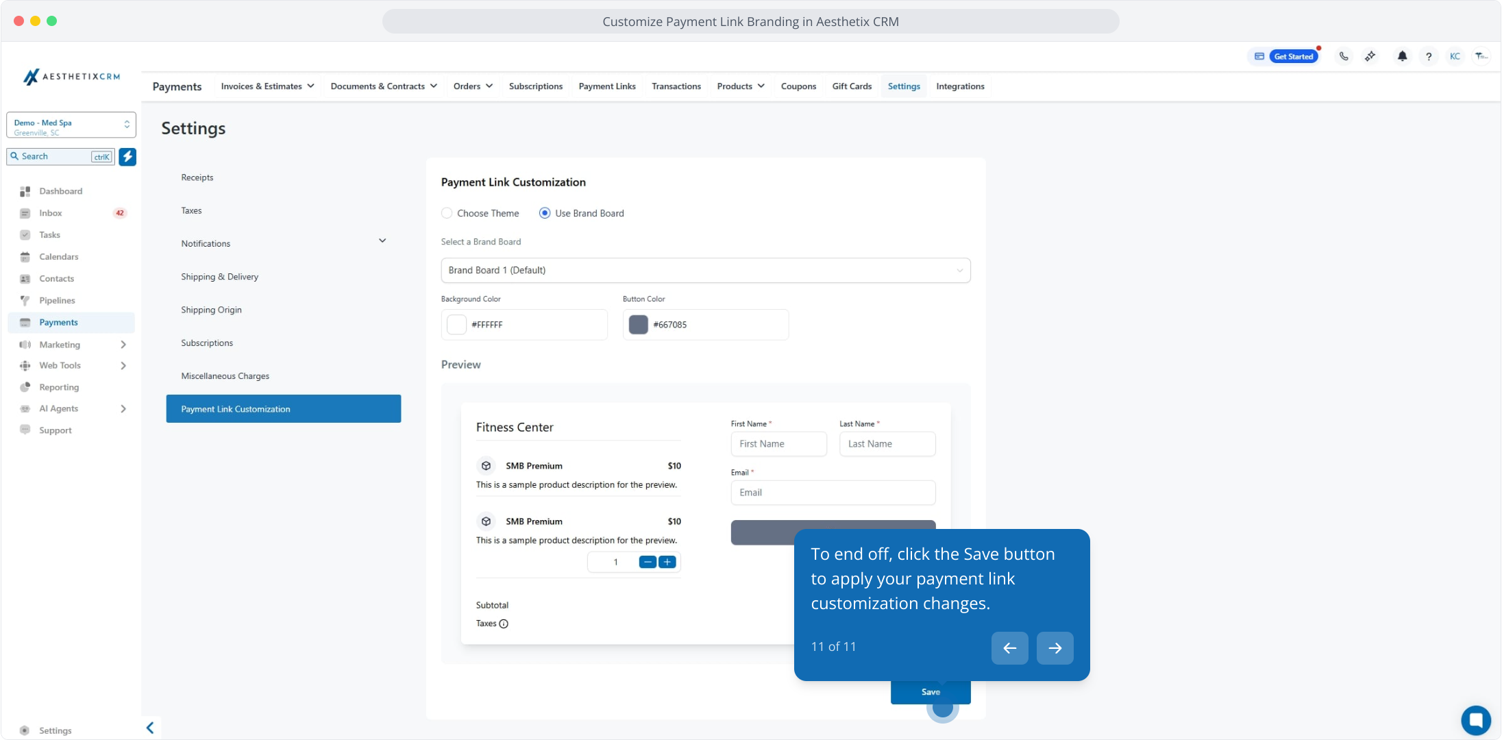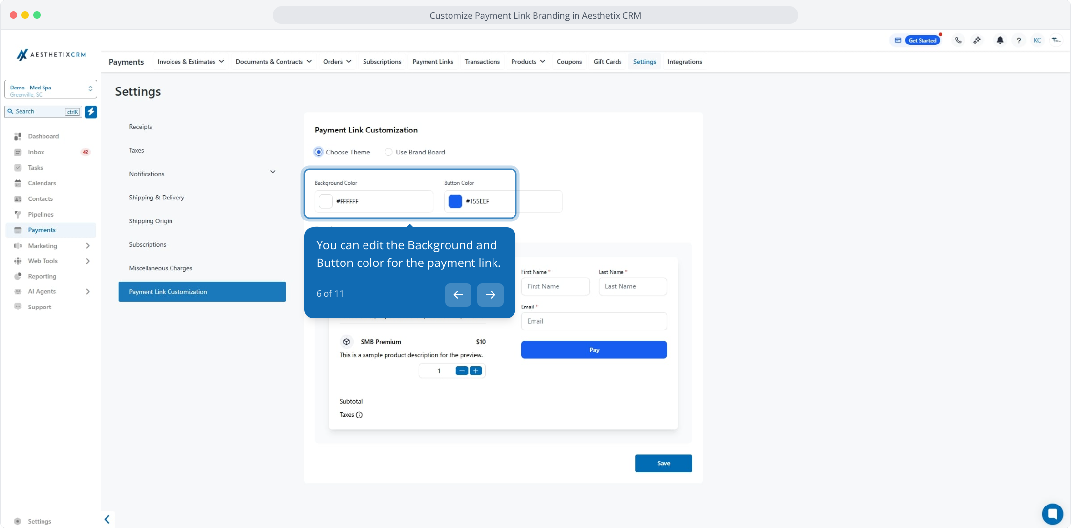 1. Customize Payment Link Branding in Aesthetix CRM