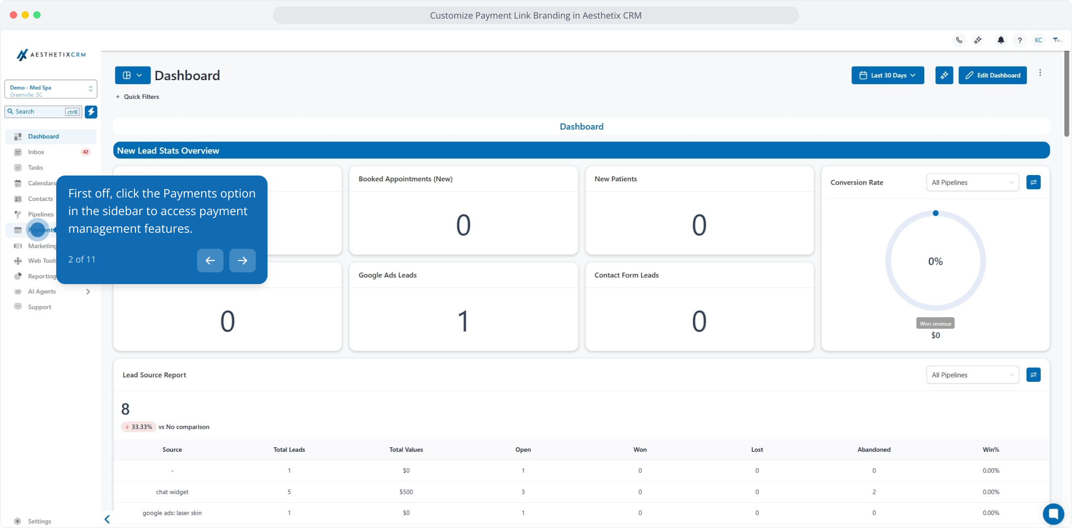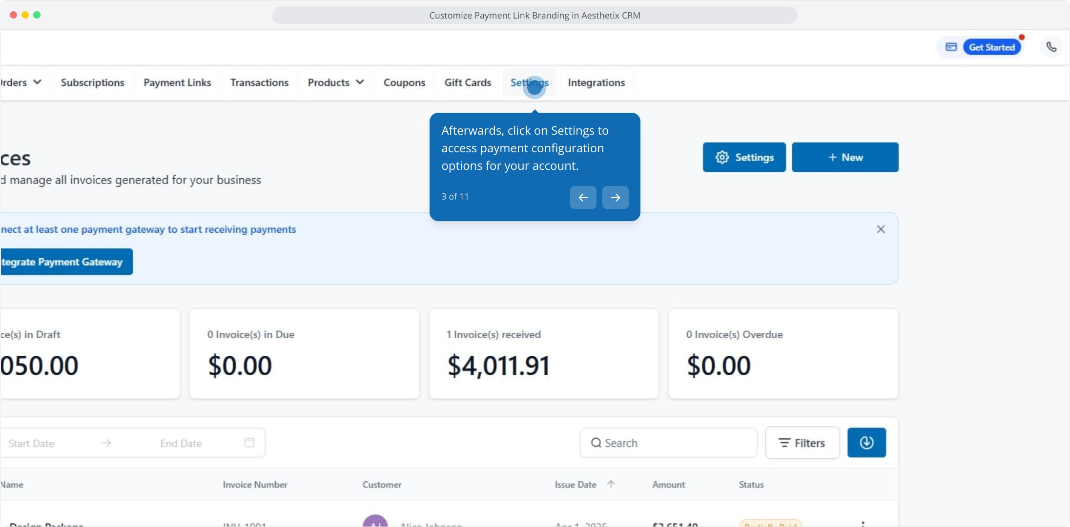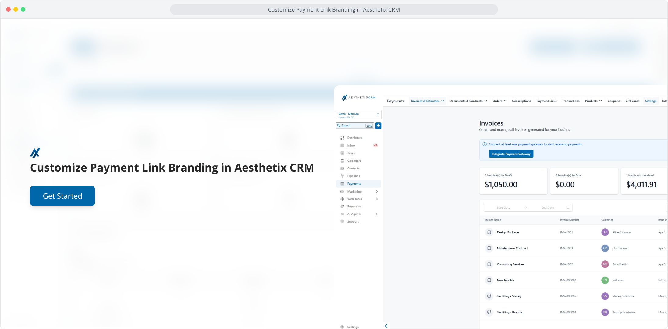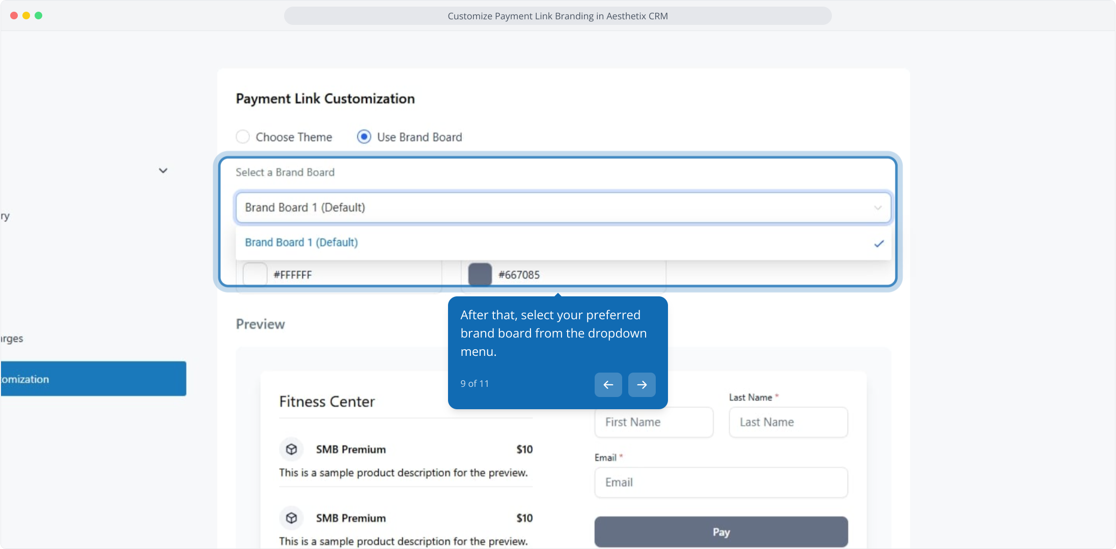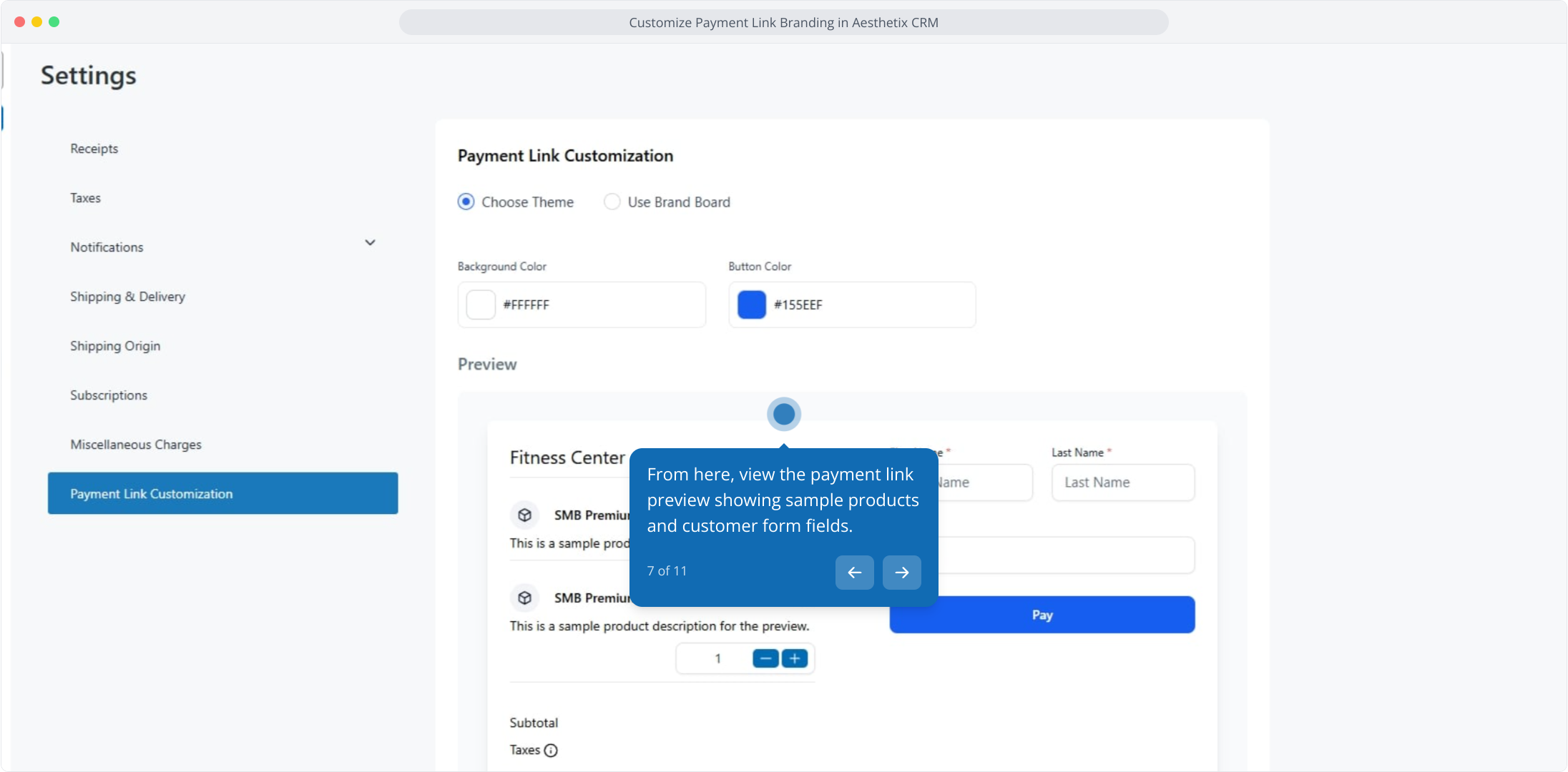 1. Customize Payment Link Branding in Aesthetix CRM