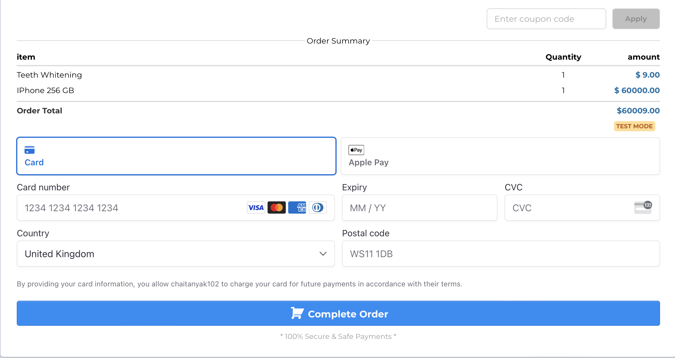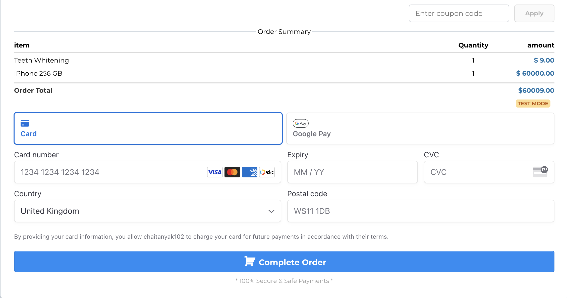 Once completed, Google Pay and Apple Pay will show alongside the credit card option on order forms. Recurring payments and upsells are supported with Apple Pay/Google Pay