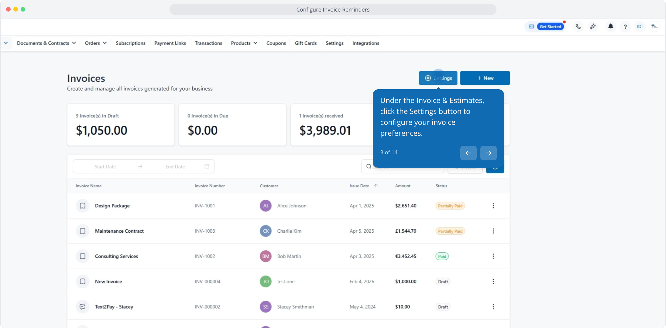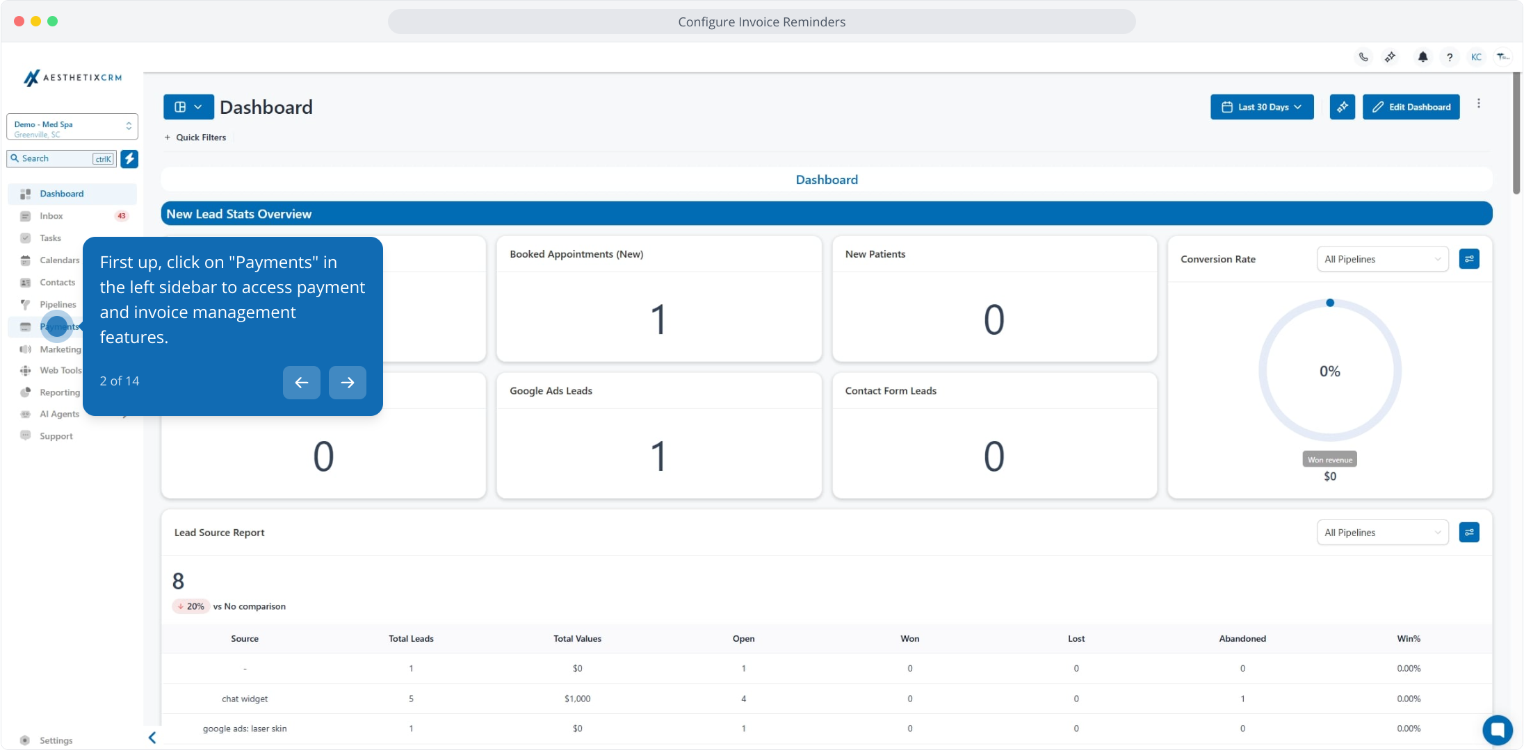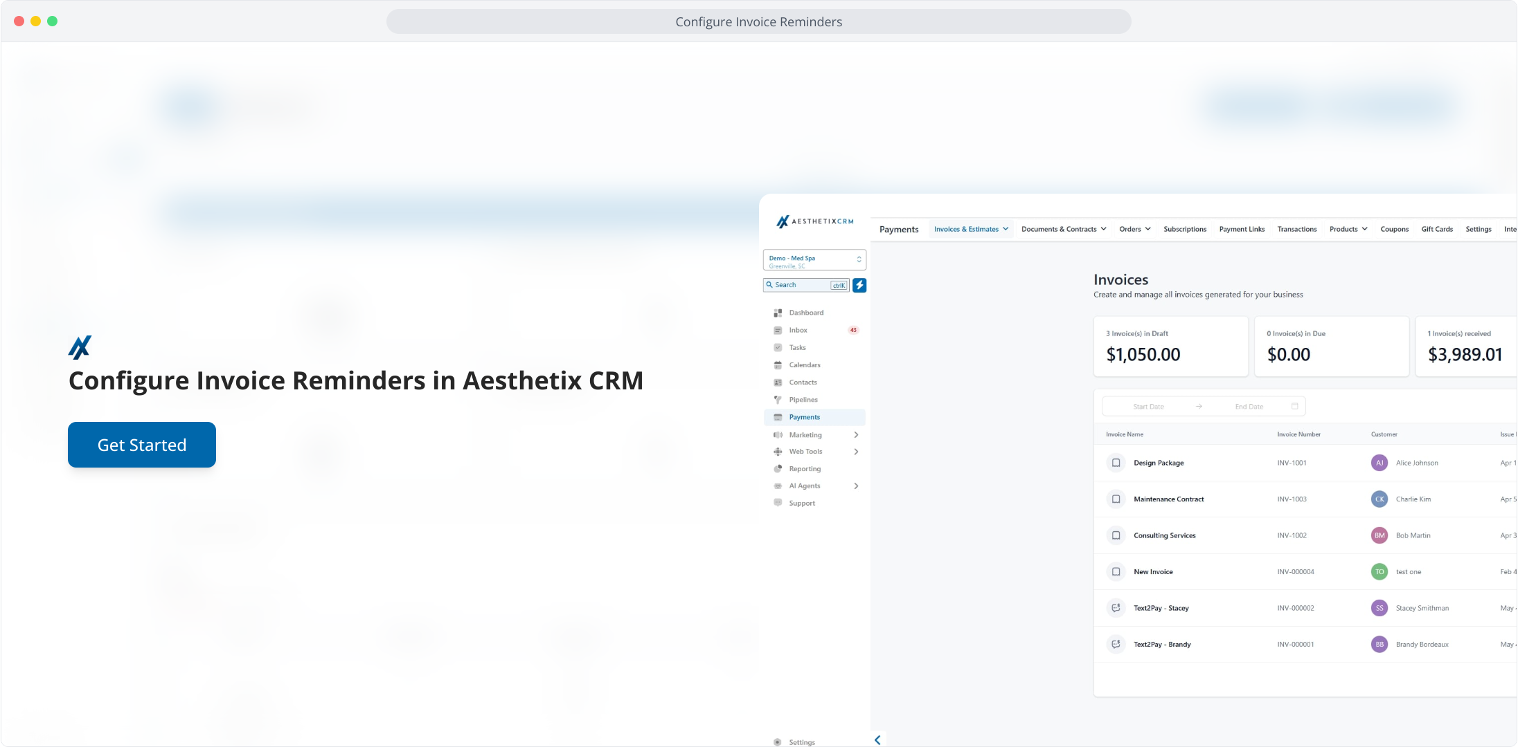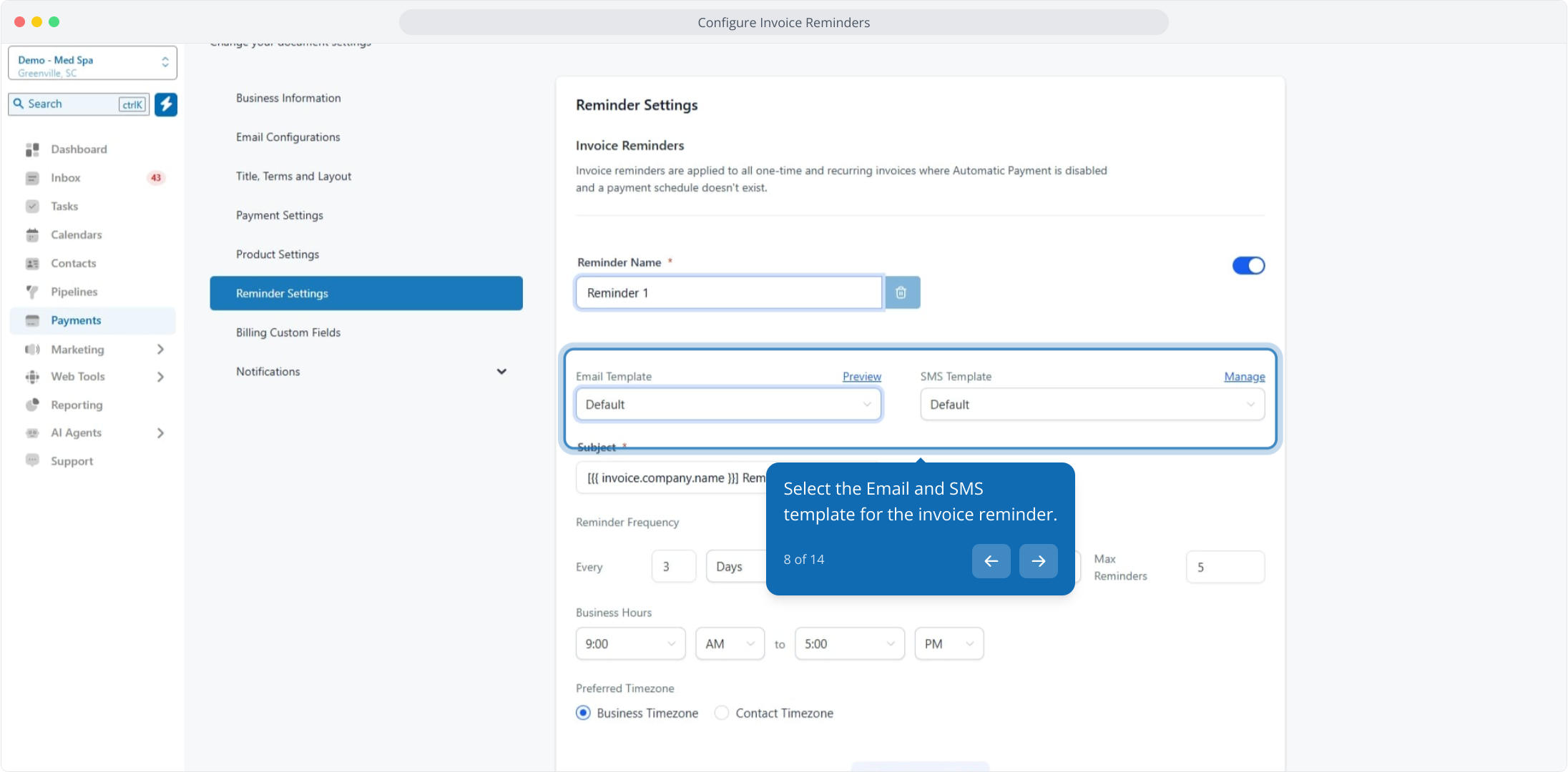 1. Configure Invoice Reminders in Aesthetix CRM
