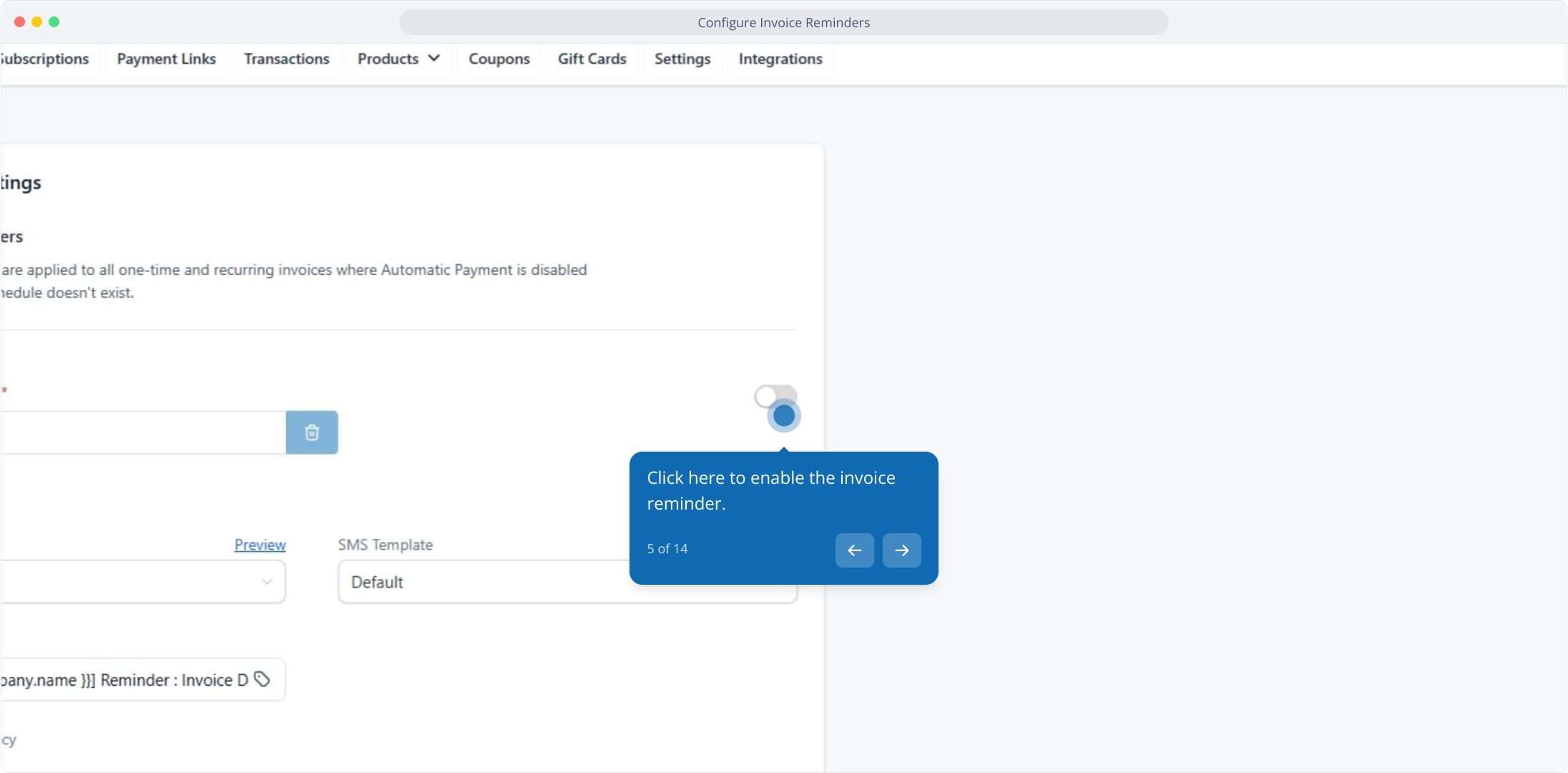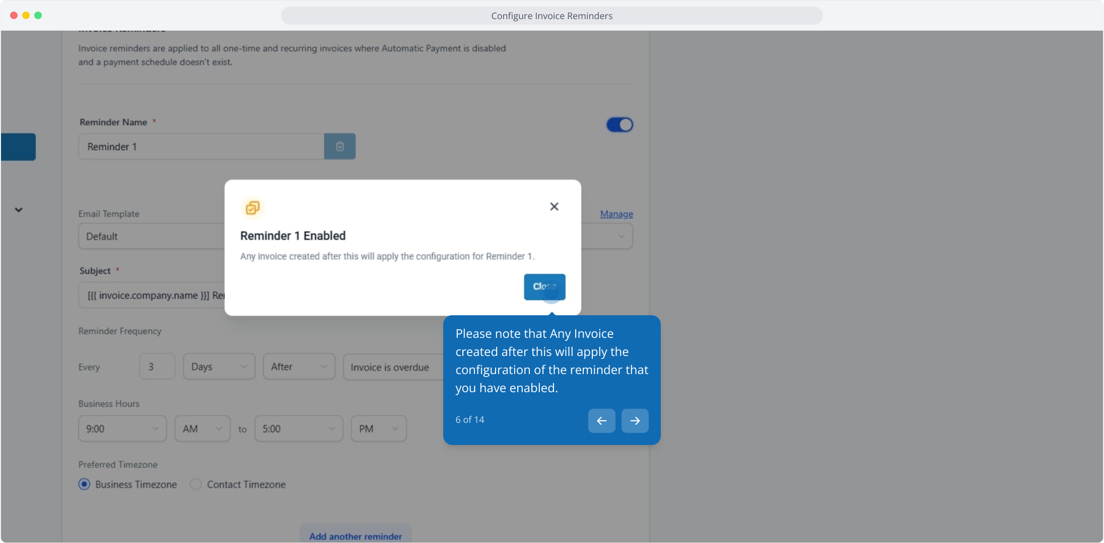 5. Click here to enable the invoice reminder.