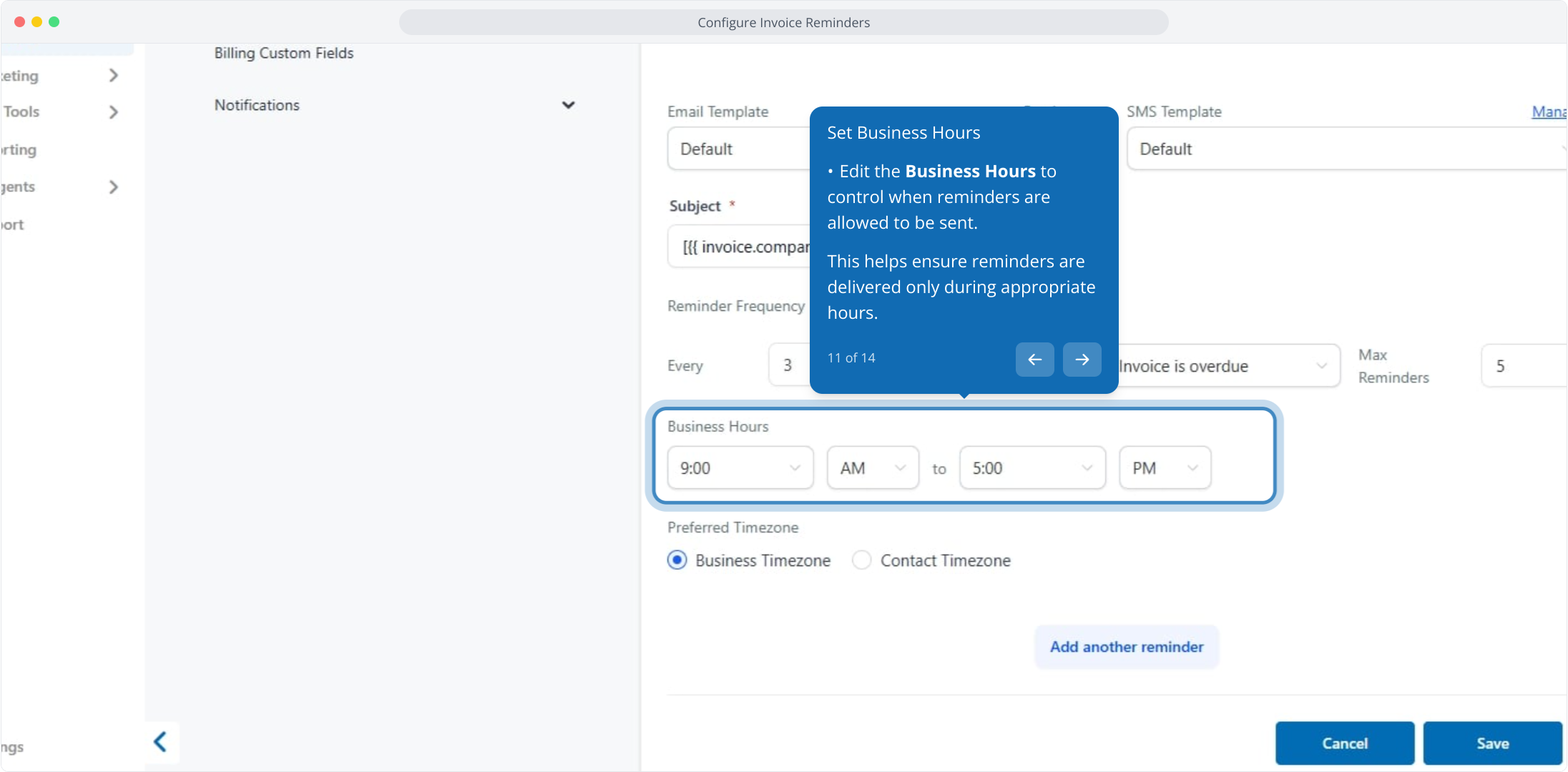 10. Edit the frequency of the invoice reminder here.