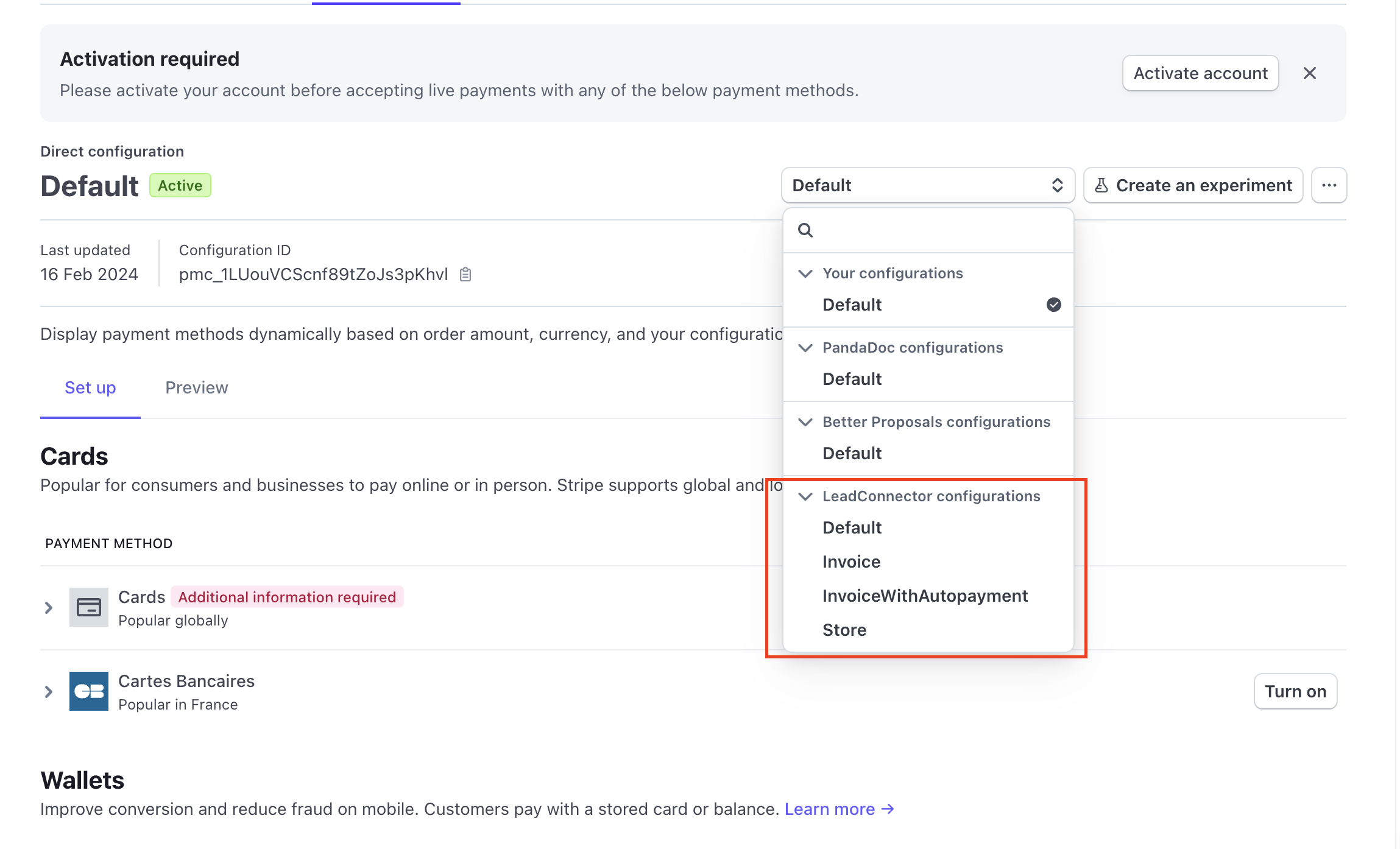 Remember to select LeadConnector configurations in the dropdown here since there can be more platforms your Stripe account is connected to. Refer to the image below
