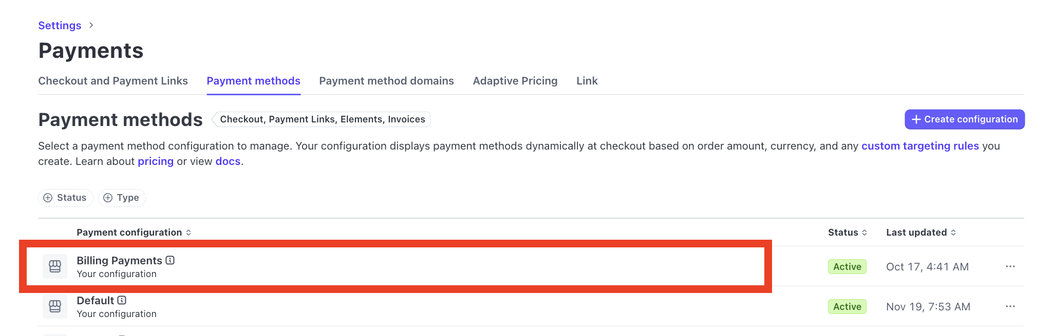 Stripe Settings -> Payment Methods -> Billing Payment Methods along with enabling them inside LeadConnector.