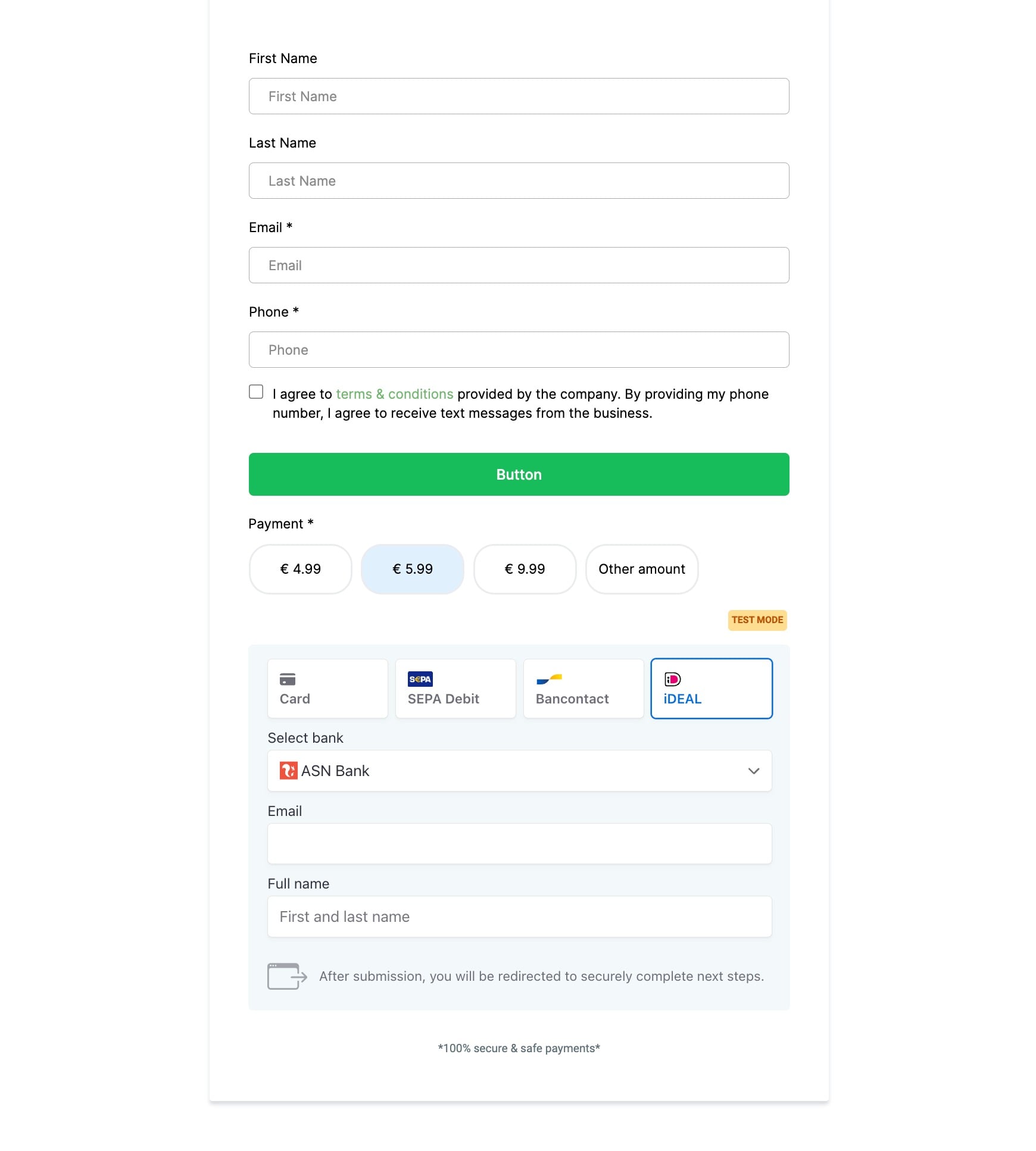 Default - Used everywhere else like 1-step and 2-step order forms, payment links, memberships and communities - Cards, Apple Pay, Google Pay, Link, Amazon Pay and Revolut Pay turned on by default
